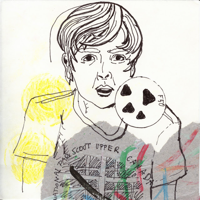 auf diesem Bild sieht man Abwischspuren von der Acrylfarbe, mit der wir Gips-Weihnachtsbaumkugeln anmalten, Abdrücke der Schokotaler, die wir aßen und außerdem malte mir der Abgebildete einen Fußball auf das Bild (weil er mir keinen ganzen Fußballer malen wollte, obwohl er doch so viele Poster von ihnen hat. Er bekam von mir das Bayern-Logo auf eine Kugel gemalt.).